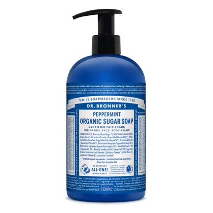 Sapunurile Dr Bronner contin Vitamina E naturala din seminte de floarea soarelui si acid citric din tapioca fermentata. Ingrediente naturale inlocuiesc conservantii chimici folositi in alte sapunuri.